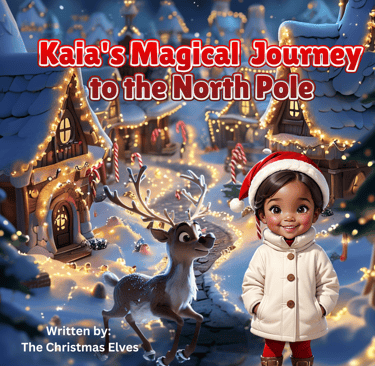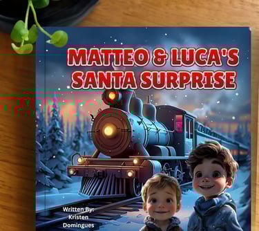 Please make a Christmas storybook for my godsons, Matteo and Luca, featuring me in the story. I’ve shared two pictures of them and one of myself to include in the book. I’d love it to be an adventure to the North Pole, written for my 3- and 5-year-old godsons.