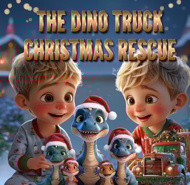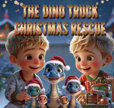 Please create a Christmas storybook for my three nephews. They love dinosaurs and trucks, so it would be fantastic if you could include these interests in the story. The two oldest (5) are the same age and the youngest we consider to be the baby. Attached are the images of the boys.
